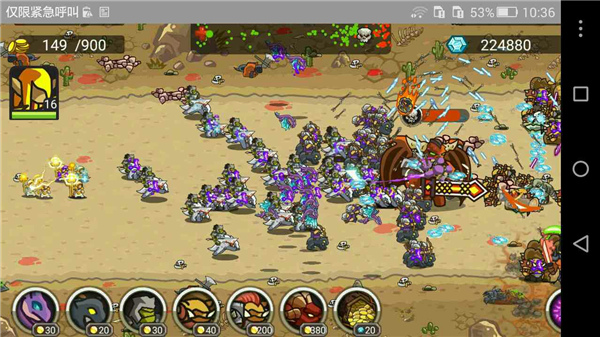 3、創(chuàng)造性的打破了原有塔防游戲的“固定路點”布防的傳統(tǒng)塔防游戲的概念,以整個戰(zhàn)場的攻防,兵陣演繹為基礎(chǔ),因此看起來新意十足。