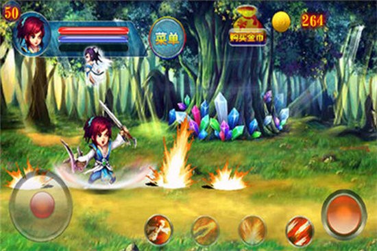 仙劍傳奇錄游戲是一款橫版闖關(guān)的動(dòng)作游戲,玩家可以觸摸虛擬按鍵來控制主角行走,攻擊。并且可以釋放強(qiáng)大的技能。通過這種簡單的操作與阻攔你的怪物進(jìn)行戰(zhàn)斗。游戲設(shè)計(jì)了豐富的劇情,并且擁有隨身商店,可以進(jìn)行裝備,道具的購買,同時(shí)你可以將技能升級(jí)。