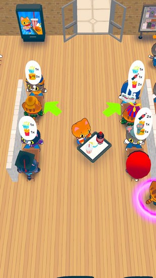 3、多樣的玩法,卡通的畫(huà)風(fēng),改善咖啡館屬性,提高效益。