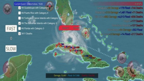 2、提供了各個(gè)城市的地圖。每個(gè)地方都會(huì)遭受不同程度的颶風(fēng)。您需要處理它們。