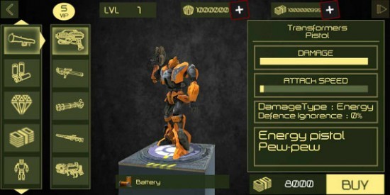 3、豐富的機器人形象設(shè)計,各種高能的汽車人變身系統(tǒng)代入,影視感的科幻視角融入。