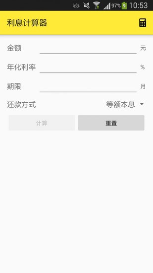 1、無(wú)任何冗余內(nèi)容,只為大家提供高質(zhì)量的貸款/理財(cái)利息計(jì)算服務(wù);