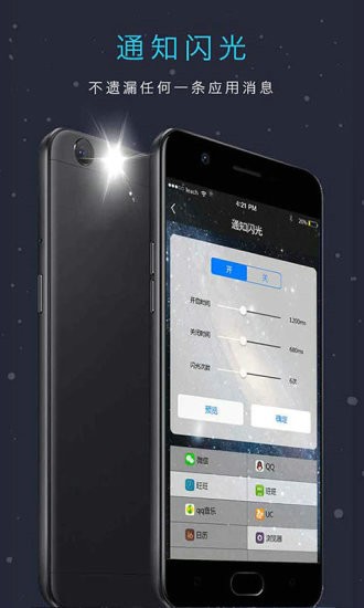 1.來電閃光:來電閃光跟隨手機(jī)鈴聲節(jié)奏默契閃光,讓鈴聲和閃光效果與眾不同,不再擔(dān)心錯(cuò)過重要電話。