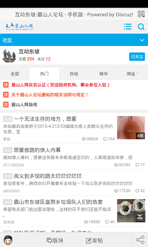 眉山人論壇手機安卓版是一款非常好用的眉山人本地論壇,在眉山人論壇手機安卓版這款軟件上有非常多的功能,首先在這里可以幫助用戶解決衣食住行的問題,在這里用戶可以找到工作,這里有非常全面的眉山招聘信息,眉山全部的招聘廣告這里都能查看,還可以在這里查看房產(chǎn)信息,找到合適的房子。此外這里還可以自由的發(fā)帖,從這里認(rèn)識更多的人。