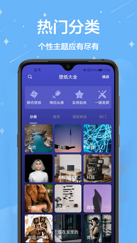 1.可以根據(jù)自己的要求制作大量人性化的壁紙,也可以一鍵轉(zhuǎn)換自己的主題風(fēng)格。