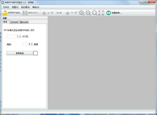 ppt轉(zhuǎn)pdf軟件免費版是能將用戶們的ppt轉(zhuǎn)換成pdf的實用性工具,ppt轉(zhuǎn)pdf軟件免費版支持將pptx和PPT格式文件轉(zhuǎn)換為PDF,并允許用戶自定義參數(shù),如將PPT的每一頁/多頁合并為一頁PDF、間距、背景顏色等。同時它還具有添加文本水印、添加圖片水印等多種功能,讓你可以獲得最佳的輸出結(jié)果,關(guān)鍵是這款軟件還提供批量轉(zhuǎn)換,非常方便用戶批量將PPT轉(zhuǎn)換為PDF,為你帶來了極大的便利。