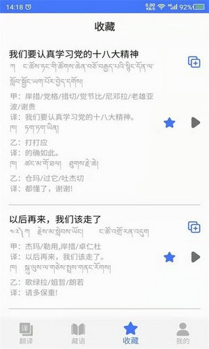 2.翻譯收藏,藏語學(xué)習(xí),生字詞,難記詞,專業(yè)詞匯都可以收藏起來,復(fù)習(xí)隨時翻看。