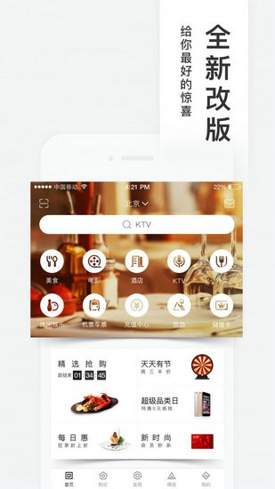 1.查找:地圖/列表雙重模式,搜羅身邊美食、電影、酒店、KTV等團(tuán)購;