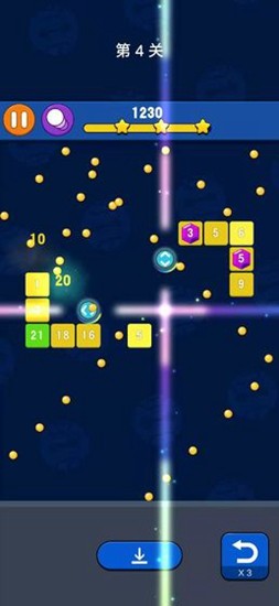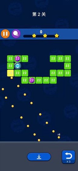 1.在快樂消磚塊游戲中,玩家將面對各種各樣的顏色、形狀和功能獨特的塊狀物,需要想方設(shè)法利用這些塊狀物來消除同色塊或打破磚塊。