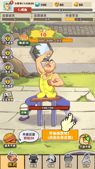 劈山大師破解版是一款休閑有趣的解壓闖關(guān)游戲,擁有豐富的游戲玩法,趣味性很強(qiáng),關(guān)卡多多,讓你盡情暢玩其中,每天都有大量的日常活動(dòng)可以讓玩家參與,每一個(gè)活動(dòng)在完成后都能帶來(lái)大量獎(jiǎng)勵(lì),期間你還能開(kāi)設(shè)武館,自創(chuàng)絕學(xué),招收弟子,延續(xù)傳承,成為聞名天下的劈山大師,不僅如此,游戲的玩法也是十分的簡(jiǎn)單,玩家們只需不斷的鍛煉并提升自己的功法等級(jí)即可,而且玩家們只要掛機(jī)就可以獲得收益,十分的人性、易上手。