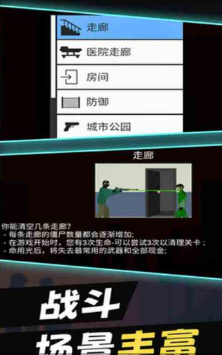 射擊機制:玩家控制角色,使用各種武器對僵尸進行射擊。游戲采用自動瞄準系統(tǒng),但玩家仍需掌握射擊節(jié)奏和時機,以應(yīng)對不同速度和攻擊方式的僵尸。