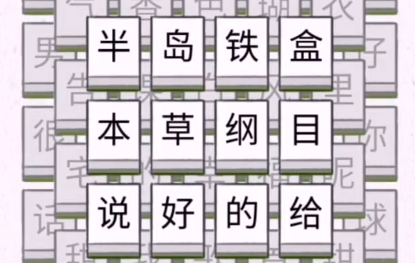 【消除歌名】需要點(diǎn)擊方塊消除,消除順序?yàn)椋喊雿u鐵盒、本草綱目、說(shuō)好的幸福呢、甜甜的、告白氣球、東風(fēng)破、七里香、黑色毛衣、給我一首歌的時(shí)間、等你下課、珊瑚海、陽(yáng)光宅男、牛仔很忙、青花瓷、聽媽媽的話。