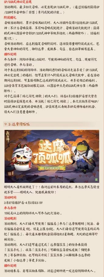 陰陽(yáng)師3月27日更新了什么 陰陽(yáng)師3月27日更新介紹