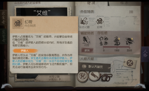艾維能手動(dòng)召喚精神體,求生者無(wú)法看見(jiàn)精神體(精神體使用,但精神體在求生者周圍時(shí),求生者邊角視角會(huì)被遮住同時(shí),這精神體的移速很快,所以一般都是通過(guò)精神體去找人,因?yàn)楸倔w的移速不快,而且精神體不受板區(qū)和窗子的影響,它能直接穿過(guò)去。
