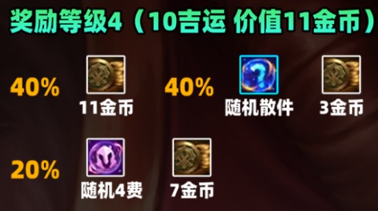40%:隨機(jī)4費(fèi)弈子 + 隨機(jī)4費(fèi)弈子 + 隨機(jī)4費(fèi)弈子 + 成裝鍛造器 + 2金幣