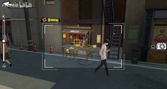 3、之后點擊右上角位置,使用相機對準攤位來拍照,對話選擇【已經拍好了】-【燒鳥七餅】-【享受生活】;【就當體驗生活了】;