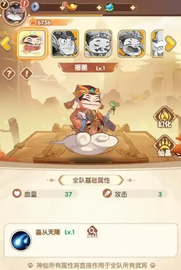 拜得神多自有神庇佑喵!獲得了神仙之后,即可為上陣殺敵的貓咪們提供大量的基礎(chǔ)屬性加成。神仙屬性會直接作用于武將,擁有多個神仙時屬性可以疊加生效。