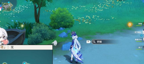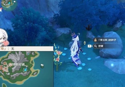 1、在水池南邊找打茉潔草,即可點擊挖掘。