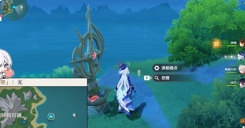 4、前往東邊島嶼并找到浪川錨點,旁邊就能挖掘。