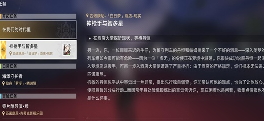 1、先傳送到酒店大堂,和指定人物對(duì)話并等待丹恒。