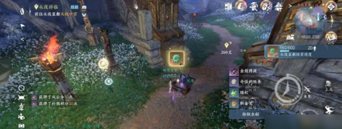 2、前往永夜星都(1816,152)使用望氣完成探索開啟第二個寶箱。