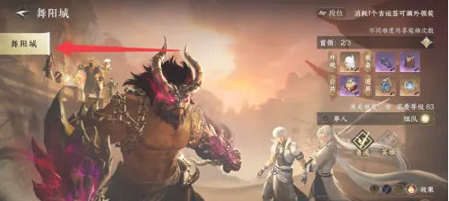 2、在副本選擇界面中,選擇團(tuán)隊(duì)副本舞陽城進(jìn)入。