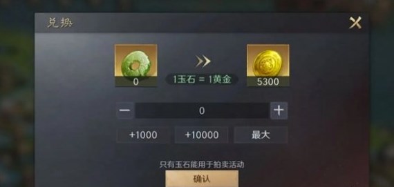 通過充值可以獲得玉石,使用玉石可以1:1的兌換成黃金。