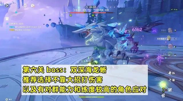 注意留好角色給第六關(guān)和第八關(guān):第六關(guān)是雙深海龍蜥,難點在于需要在短時間內(nèi)同時擊殺,以及他們的特定攻擊會減少我方角色的能量。推薦大家選擇不靠大招打傷害,以及有對群能力和練度比較高的角色應(yīng)對。