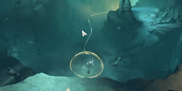 7、最后我們再次返回關(guān)閉溯流儀,使水位下降,然后來到水潭底部擊敗殘像后激活第三枚曜巖。