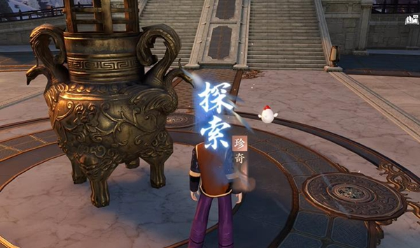 2、隨后根據(jù)紙條的內(nèi)容開(kāi)始解密探索,玩家需要前往編鐘處,使用大錘進(jìn)行解密。