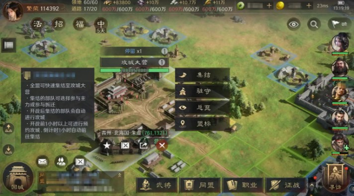 3、宣戰(zhàn)期間需通知盟友一起進(jìn)行攻城活動(dòng),將要參與打城的部隊(duì)進(jìn)行預(yù)約,時(shí)間開始后會(huì)自動(dòng)攻城。