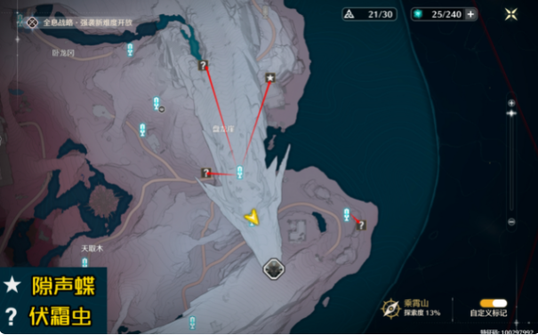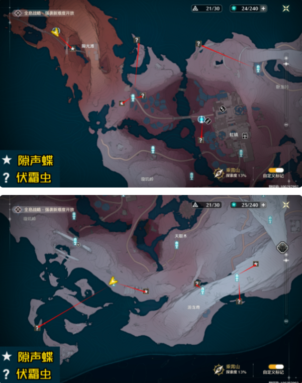 *其中星星圖標是隙聲蝶,問號圖標是伏霜蟲,具體位置如下: