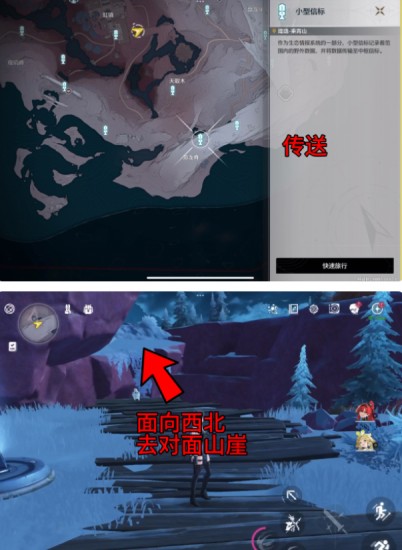 3、之后來到【游龍脊】右側(cè)的傳送點(diǎn),之后面向西北去對(duì)面山崖;