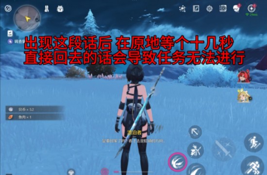 6、一直劇情對(duì)話,等出現(xiàn)下圖這段對(duì)話后,在原地等個(gè)十幾秒(直接回去的話會(huì)導(dǎo)致任務(wù)無法進(jìn)行);
