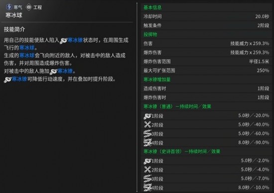 ※寒冰鐐效果:生成時(shí)寒冰鐐效果提升3階/爆炸時(shí)寒冰鐐效果提升4階