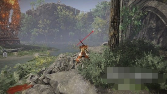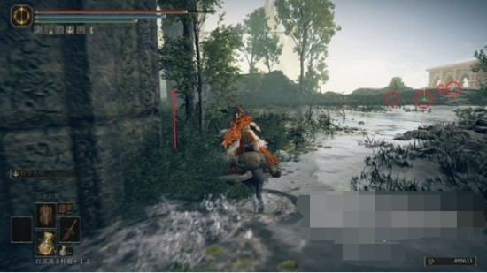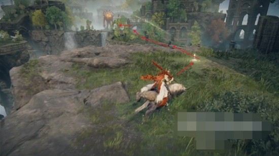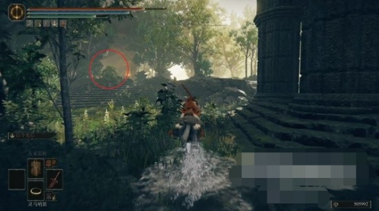 4、然后往前方右側(cè)走,騎馬跳到樹(shù)上拾取樹(shù)上的光點(diǎn)可以獲得【熔爐薄翼護(hù)符】。