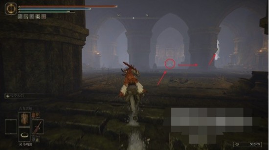 7、然后從賜福點(diǎn)出發(fā),按照下圖所示路線順著右前方的石橋走