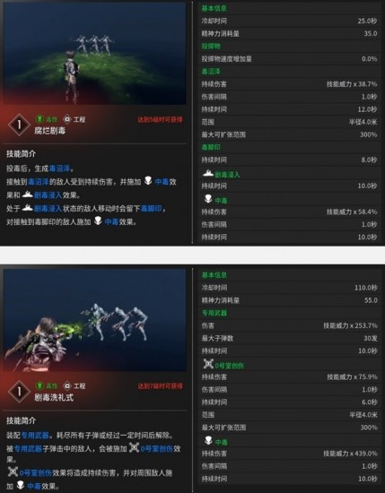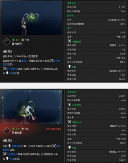 ①毒性創(chuàng)傷(工程):投出毒,對(duì)被擊中的敵人造成傷害并對(duì)周圍的敵人施加0號(hào)室創(chuàng)傷。