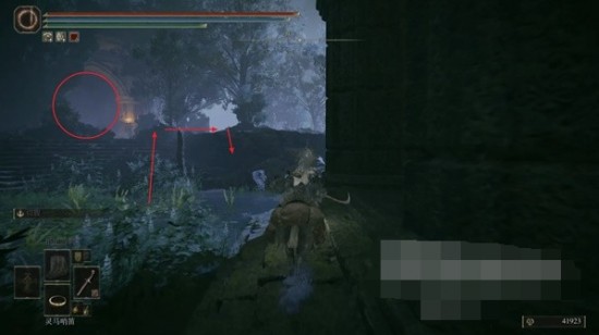 9、在下層的森林繼續(xù)往左下跳,在底層往右側(cè)的圓形建筑遺跡走。