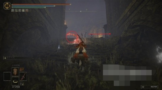 3、小心樓梯上的紅色跳彈,馬匹碰到可能會直接死亡,爬上樓梯往右走。