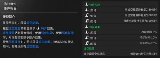 使用技能后獲得虛空能量。虛空能量達(dá)到最高值時(shí),將強(qiáng)化技能賦予額外效果。