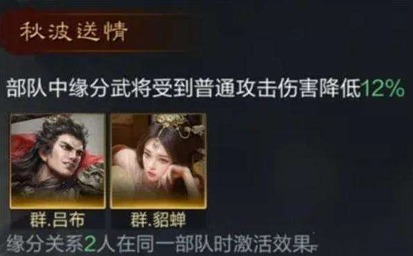 團(tuán)隊(duì)中配對(duì)武將遭受普通攻擊傷害減少12%。