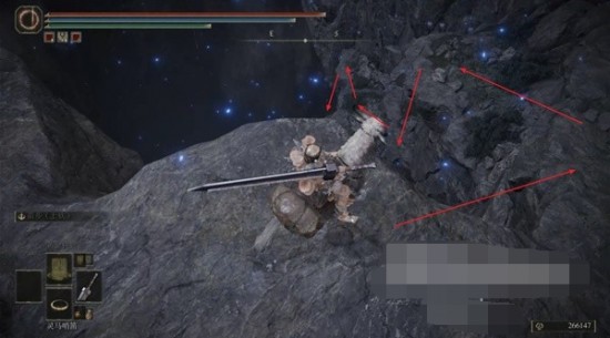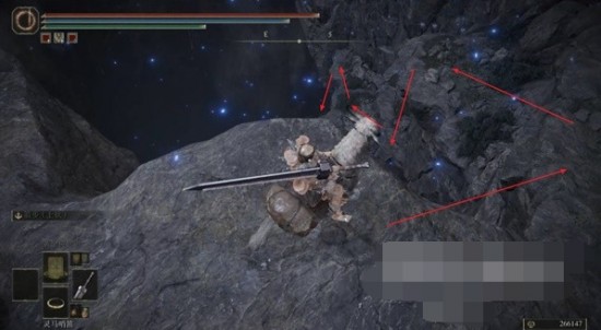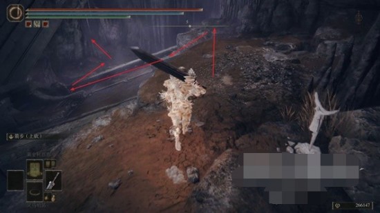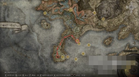 5、然后從第二個賜福繼續(xù)往右邊走,按照下圖路線走到盡頭處的懸崖。