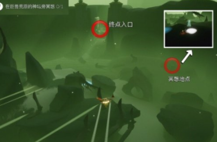 3、然后往山谷的玩終點(diǎn)處飛,在終點(diǎn)那里就可以找到冥想地點(diǎn)。