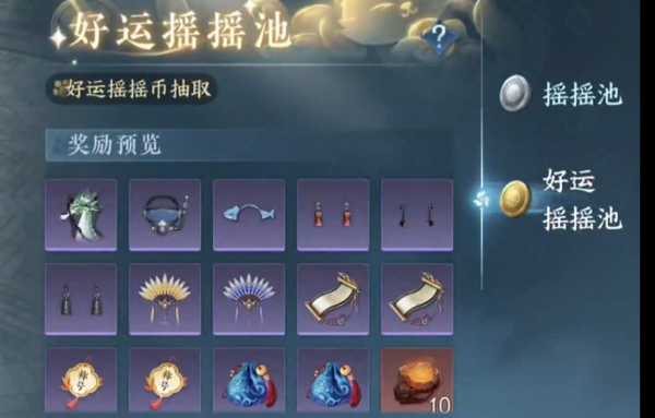 在好運(yùn)搖搖池參與抽獎(jiǎng),抽取幸運(yùn)裝備等資源獎(jiǎng)勵(lì)。
