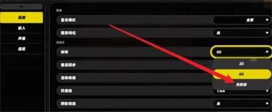 3、最后點擊幀率調(diào)整為無限制即可完成設(shè)置。