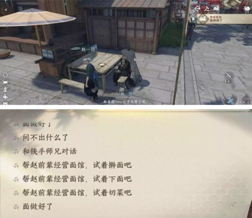 2、跟著任務(wù)指引玩家可以看到有一個吃面的老人