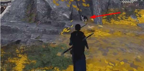 4、來到山上佛像后面,可以找到第一只貓貓。