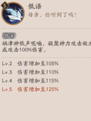 禍津神低聲呢喃,凝聚神力攻擊敵方目標(biāo),造成攻擊100%傷害,無特殊效果。
