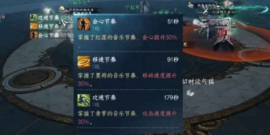 2.在boss【墨荷】出場(chǎng)的時(shí)候一直按【閃避】按鍵,將圖中所示的buff欄疊到十層變?yōu)椤疽扑俟?jié)奏】。
